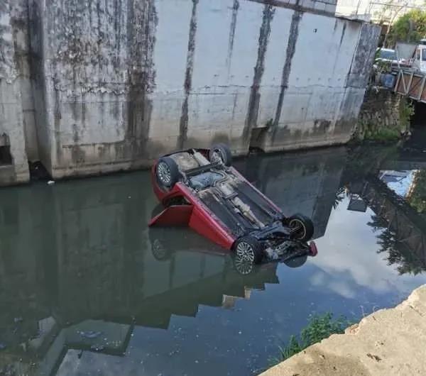 惊险!东莞一小车失控掉进臭水渠!3男子下水救人,结果...