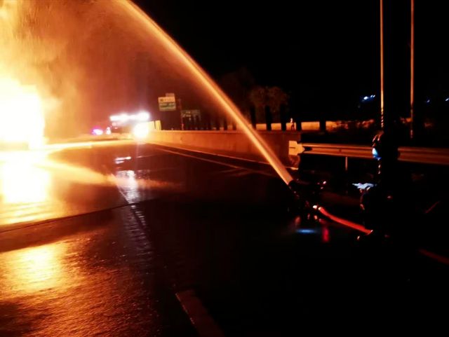 吓人!粤S槽罐车与一小车碰撞引发火灾,高速路上火光冲天