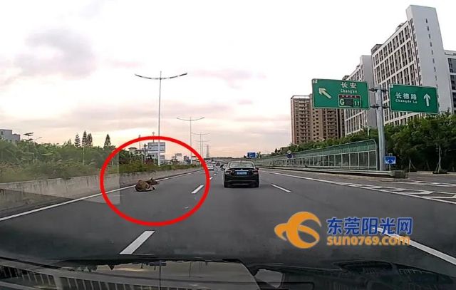 吓坏!两头黄牛闯入环莞快速乱窜!其中一头被车撞伤
